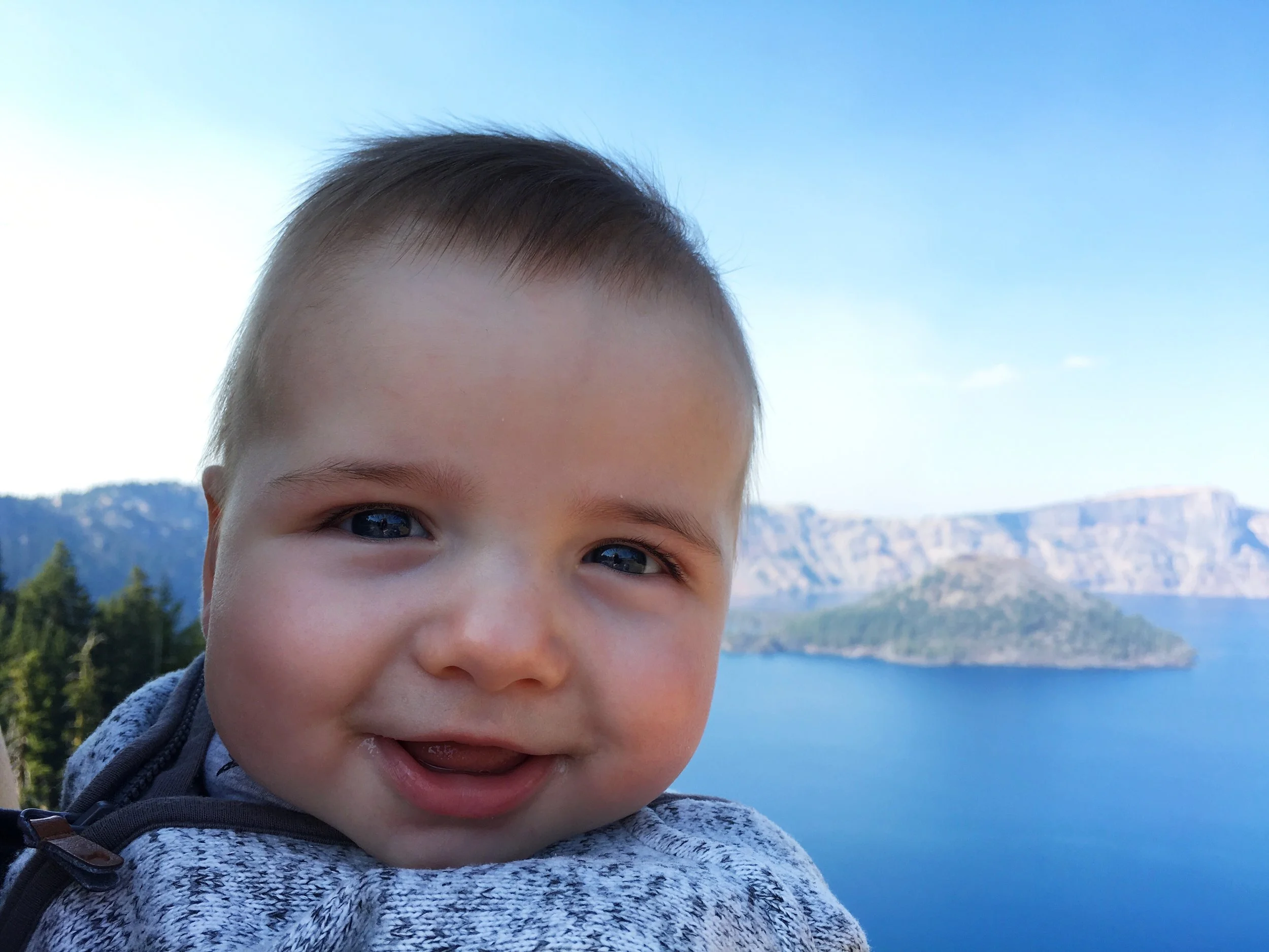 We were in Oregon, USA, while the state, mostly in the forested areas, was being extensively burned by forest fires. The smoke was at times intense and a couple of times it caused us to have to stay inside as the toxicity was too high for babies to inhale. It was to the point that we thought we might miss out on Crater Lake while we were in the south. But on a Friday morning, the last day we had available in the area, the smoke cleared and we made our way up to one of the most beautiful lakes I've ever seen!